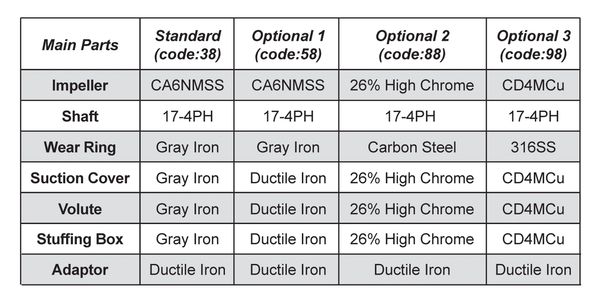 Lip Seals: CR type, single lip, Buna-N (Bearing & SAE Cover) and Viton(Stuffing box)